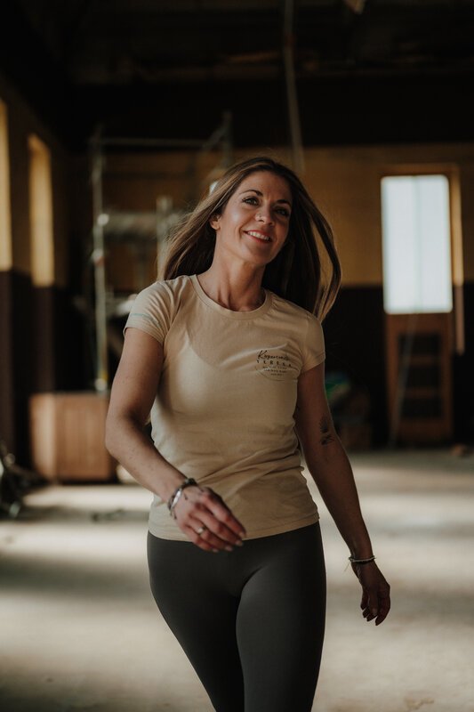 Ich bin Teresa, lebe in Halberbracht, bin Mama von zwei Jungs und am liebsten mit meinen Hunden draußen unterwegs. Mein beruflicher Start lag in der Ernährung: Ich habe die Ausbildung zur Diätassistentin gemacht, weil mich Kochen faszinierte – aber mir war der Kontakt zu Menschen wichtig. Also habe ich Kochen & Ernährung mit Beratung verbunden. Später kamen die sportlichen Qualifikationen dazu: Übungsleiterin, Personal Trainerin (Sporthochschule Köln), Lizenzen im Nordic Walking, Rehasport (Orthopädie & Neurologie) und die Yogalehrerin(krankenkassenzertifiziert, 2025). Als Präventionstrainerin liegen meine Schwerpunkte auf Beckenboden und Rücken. 2024 habe ich mit Jacqueline Grobbel den Kraftort Halberbracht eröffnet – einen Ort, an dem Gesundheit, Miteinander und Leichtigkeit zusammenkommen.